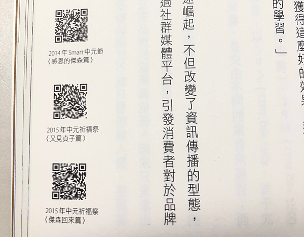(全聯的行銷管道是出了名的有趣,這本書左側也提供QR code,可以掃條碼看廣告,滿有意思的。)